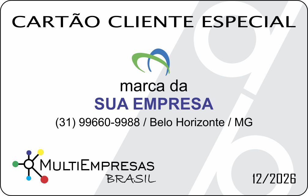 Para usufruírem dos descontos oferecidos, o consumidores deverão apresentar nas empresas participantes o “Cartão Cliente Especial – MULTIEMPRESAS BRASIL”. O cartão é confeccionado com a mesma qualidade dos cartões bancários, possuindo selo antifraude, numeração e QR Code direcionando o usuário para o nosso site, podendo, a qualquer momento, possuir marcas de apoiadores, patrocinadores, chip eletrônico, etc.